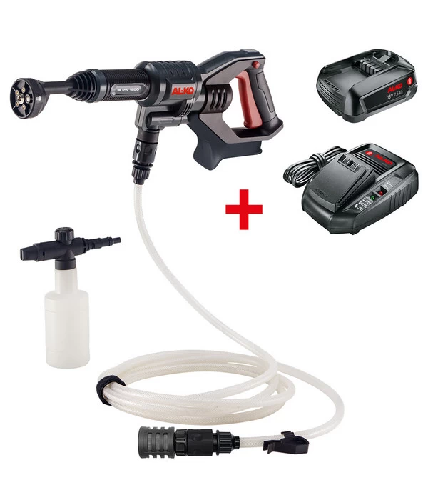 Sie schätzen praktisches Equipment, das sich durch eine vielfältige Nutzbarkeit auszeichnet? Mit dem hochwertigen, angenehm leichten AL-KO Akku-Druckreiniger PW 1850 erhalten Sie eine mobile, leistungsstarke Maschine, die sich rund um Haus und Garten flexibel einsetzen lässt. Dank seines im Lieferumfang enthaltenen Akkus mit sparsamer ECO-Funktion können Sie länger arbeiten und sich ungestört bewegen, ohne auf ein mitunter lästiges Kabel achten zu müssen. Auch ein Strom- oder Wasseranschluss ist nicht vonnöten, um den hochwertigen Druckreiniger in Betrieb zu nehmen. Sie suchen sich einfach eine beliebige geeignete Wasserquelle, zum Beispiel eine Regentonne, einen Wasserhahn oder eine mit Wasser gefüllte Flasche. Weil der Ansaugschlauch des Akku-Druckreinigers PW 1850 mehrere Meter Länge aufweist, stellen selbst weiter entfernte Reservoirs kein Problem dar.