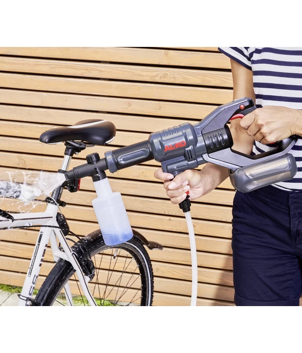 Ganz gleich, ob Sie das Gerät für Reinigungsaufgaben verwenden oder es zur Bewässerung Ihrer Pflanzen benötigen, für jeden Einsatz bietet der AL-KO Akku-Druckreiniger PW 1850 die richtige Sprühfunktion. Dafür sorgt die verstellbare 5-in-1-Wasserdüse, die Ihnen die Wahl zwischen fünf verschiedenen Strahlbreiten lässt. Verschmutzungen an Fahrrädern oder auf Terrassen können Sie auf diese Weise effektiv entfernen, bei Bedarf aber auch Ihre zarten Setzlinge befeuchten. Bestellen Sie den Akku-Druckreiniger PW 1850 von AL-KO und überzeugen Sie sich von seinen positiven Gebrauchseigenschaften!