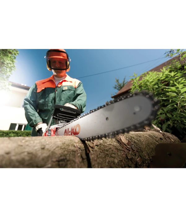 Im Gegensatz zu anderen Kettensägen wurde bei der AL-KO Elektrokettensäge EKI 2200-40 der Motor längs zum Schwert eingebaut. Das hat den Vorteil, dass die Säge deutlich schlanker ist, was auch das Agieren in dichterem Geäst ermöglicht. Außerdem wird durch den längs verbauten Motos das Gewicht besser verteilt und die Säge ist trotz des Gewichts von 6 kg leichter und komfortabler handhabbar, so dass Sie auch in großer Höhe Äste und Zweige ermüdungsfrei schneiden können.