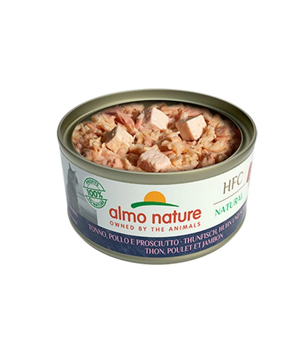 almo nature Nassfutter für Katzen HFC Natural, Thunfisch, Huhn & Schinken, 24 x 70 g