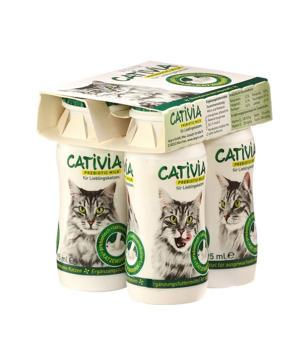 Katzen lieben Milch normale Milch ist wegen ihres hohen Laktoseanteils jedoch ungesund für Katzen. Mit dem Cativia Katzendrink können Sie Ihrem Stubentiger etwas Gutes tun. Die Katzenfutter-Ergänzung ist nicht nur schmackhaft, sondern auch gesund. Durch Prebiotika und Vitalstoffe unterstützt das Ergänzungsfutter nachweislich die Verdauung und verbessert die Immunabwehr.