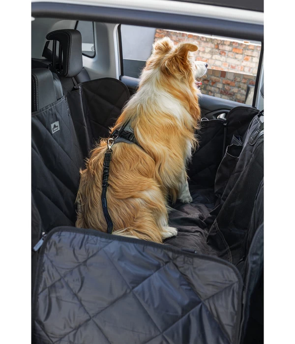 Die Taschen und Koffer sind gepackt und werden gerade ins Auto geladen und Ihr Hund ist schon ganz aufgeregt, denn er möchte natürlich mit in den Urlaub. Dann tragen Sie die Dehner Autoschondecke Drive zum PKW, befestigen sie auf der Rücksitzbank und jetzt kann Ihr Vierbeiner sicher sein: Er darf wirklich mit! Schnell wird er mit einem großen, freudigen Satz hineinhüpfen und sich dann zufrieden hinlegen. Aber auch, wenn Sie nur zum Ausflug an den nahen Baggersee oder zum verregneten Hundespaziergang in den nahen Wald fahren, wird Ihnen der Fahrzeugsitzbezug gute Dienste leisten. Denn er schützt die Rückbank, die Sitzrückseiten und die Türen Ihres Autos vor Schmutz, Nässe und Kratzern. Auch Hundehaare können sich dann nicht mehr auf den Polstern festsetzen, die sich oft nur schwer mit einem Staubsauger entfernen lassen. Vermeiden Sie ab sofort unnötigen Schmutz und Beschädigungen im Auto und schützen Sie Ihr Auto mit der Dehner Autoschondecke Drive!