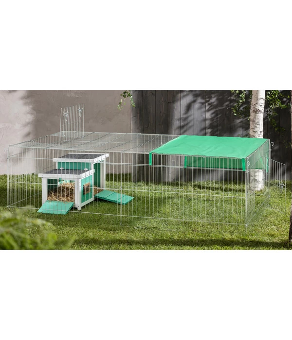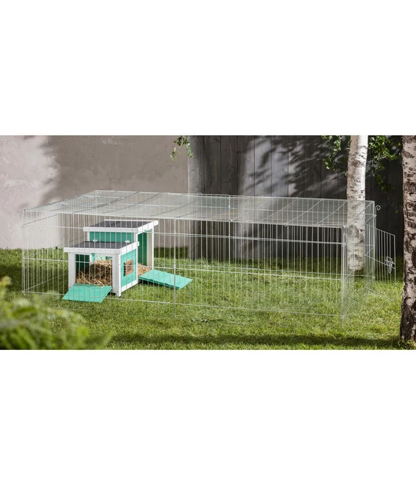 Das wasserdichte Bitumen-Dach schützt das Dehner Nagerschlafhaus Happy Home Teatro vor der Witterung und harmoniert auch optisch gut mit dem restlichen Design. Die türkise Farbe wirkt an diesem Schlafhaus besonders modern und freundlich, die weißen Rahmenlinien runden die Optik gelungen ab. Zusätzlich holen Sie sich mit dem Dehner Nagerschlafhaus Happy Home Teatro ein äußerst kompaktes Qualitätsprodukt nach Hause – bei einem gleichzeitig großen Platzangebot für Ihre Kleintiere. Sie erhalten dieses schöne Schlafhaus für Kaninchen inklusive einem praktischen Schraubensatz, der Ihnen die ohnehin schon unkomplizierte Montage erleichtern wird.