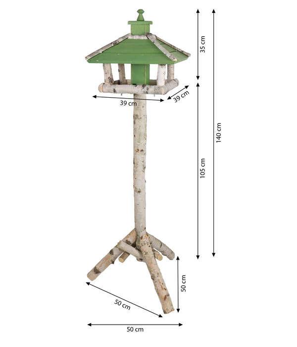 Vogelhaus, aus Birkenholz, mit Futtersilo, inkl. passendem Ständer