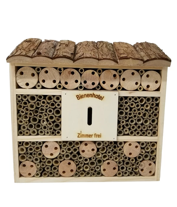 Insektenhotel, speziell für Wildbienen, aus Bambus, Kiefern-, Tannen- und Sperrholz, Maße: 29,5/28,5/9,5 cm