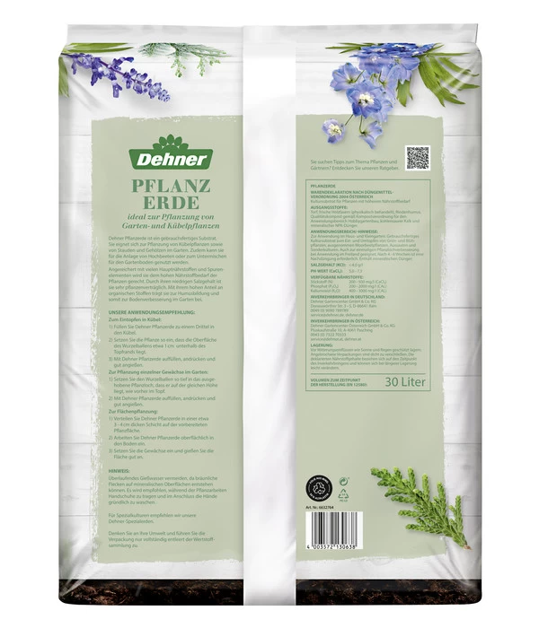 Ob Ziergehölze oder Heckenpflanzen, ob einjährige Sommerblumen oder mehrjährige Stauden – alle werden sich in diesem Substrat wohl fühlen und ausgezeichnet gedeihen. Denn die Dehner Pflanzerde enthält hochwertige organische Substanzen, die humusbildend wirken und auf diese Weise für eine schnelle und kräftige Bewurzelung sorgen. Die Erde hat außerdem einen niedrigen Salzgehalt und ist deshalb besonders gut verträglich für Ihre Pflanzen. Und mit einem mittleren pH-Wert zwischen 5,5 und 6,5 ist sie ideal für die meisten Gartenpflanzen.