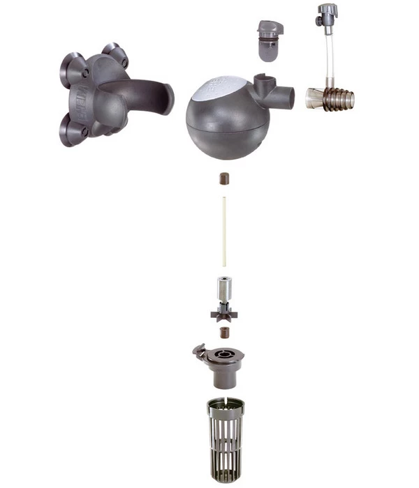 Die EHEIM Aquarienpumpe Kugelkopf-Universalpumpe powerhead 650 wartet aber noch mit einer Besonderheit auf, die ihr Name schon andeutet: Sie hat einen kugelförmigen Pumpenkopf, der auf einem Kugelgelenk sitzt und deshalb rundum schwenkbar ist. So können Sie die Ausströmung des gereinigten Wassers in genau die Richtung lenken, die für die Gegebenheiten Ihres Aquariums die Beste ist. Außerdem können Sie bei der EHEIM Aquarienpumpe Kugelkopf-Universalpumpe powerhead 650 natürlich auch die Pumpenleistung und die Durchflussmenge mit dem Drehknopf am Ausflussstutzen einstellen.
