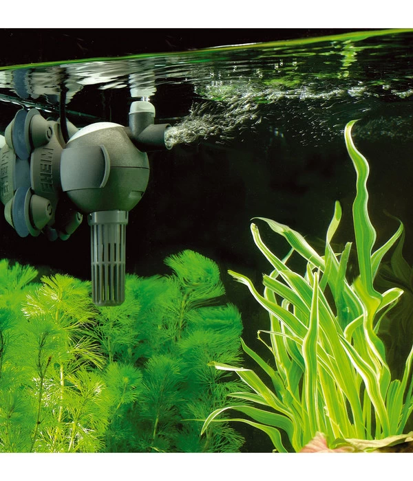 Im Lieferumfang der EHEIM Aquarienpumpe Kugelkopf-Universalpumpe powerhead 650 ist auch ein Power-Diffusor enthalten, mit dessen Hilfe Sie die Luftzufuhr und somit auch die Sauerstoffanreicherung in Ihrem Aquarium regulieren können. Und wenn Sie außerdem den aquaball einsetzen möchten, können Sie diesen ganz einfach mit Saugern im Becken befestigen.