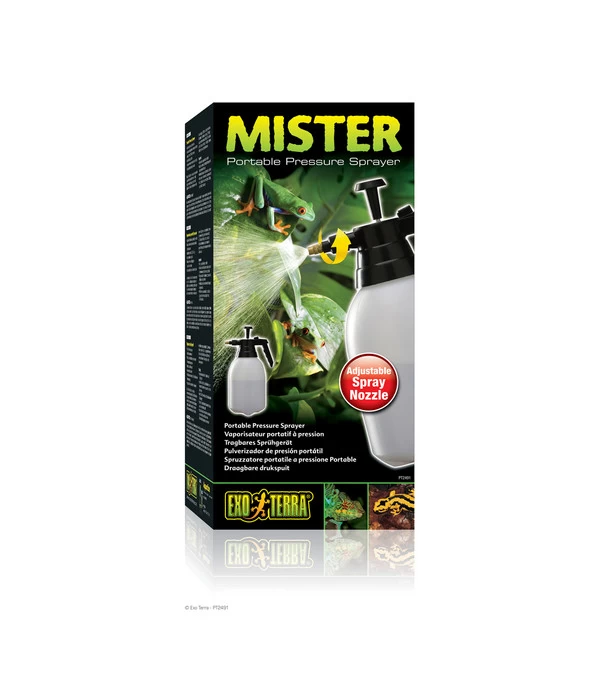 Wenn Ihnen optimale Terrarienbedingungen am Herzen liegen, dann ist das tragbare Sprühgerät Exo Terra® Mister, tragbares Sprühgerät, 2 Liter Mister für die Pflege und gute Haltung Ihrer Reptilien unerlässlich. Mit diesem praktischen Terrarium Zubehör sorgen Sie einfach und bequem für die richtige Luftfeuchtigkeit in Ihrem Terrarium. Das leicht bedienbare und tragbare Sprühgerät verfügt über eine Sprühdüse, die Sie so einstellen können, dass Sie entweder mit einem einzigen Strahl sprühen oder einen Sprühregen im Terrarium verteilen können. Zudem ist in der Exo Terra® Mister, tragbares Sprühgerät, 2 Liter ein Verschlussmechanismus integriert, der Ihnen das Sprühen ohne Unterbrechung möglich macht. Mit ihren 2 Litern Fassungsvermögen ist das Sprühgerät Mister von optimal geeignet, um auch größere oder mehreren Terrarien, Außengehege oder Gewächshäuser zu befeuchten. Bitte beachten Sie, dass Sie mit diesem Terrarium Zubehör nicht direkt auf Ihre Reptilien zielen und diese auch nicht direkt besprühen sollten. Wichtig ist auch, dass Sie die Sprühflaschenpumpe und das Wasserbehältnis vor dem ersten Gebrauch mit sauberem und warmem Wasser ausspülen und natürlich auch nie etwas anderes einfüllen als klares Wasser! Setzen Sie das Exo Terra® Mister, tragbares Sprühgerät, 2 Liter Sprühgerät auch nicht der unmittelbaren Sonneneinstrahlung oder anderer extremer Hitze aus, da die Flasche unter Druck steht. Und noch ein Tipp: Verwenden Sie am besten immer destilliertes oder sehr weiches Wasser, um Kalkränder bzw. Kalzium- oder Mineralstoffablagerungen zu vermeiden. Für den Fall, dass Sie Leitungswasser verwenden, empfehlen wir das Zufügen von einigen Tropfen Exo Terra® Aquatize, um Ihr Leitungswasser zu neutralisieren und zu entgiften. Nur so sind Ihre Reptilien und Amphibien immer auf der sicheren Seite. Und befüllen Sie das tragbare Sprühgerät Exo Terra® Mister, tragbares Sprühgerät, 2 Liter vor jedem Gebrauch mit frischem Wasser!