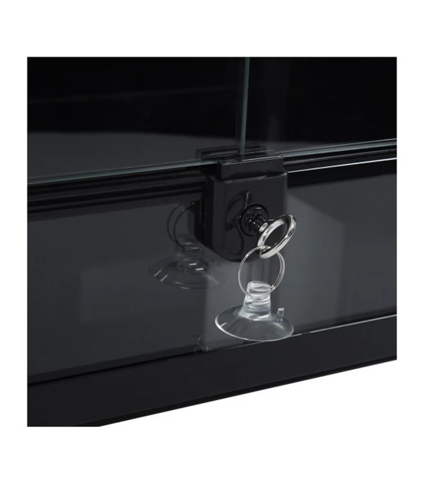 Die Oberseite des Terrariums besteht aus einem rostfreien Metallgewebe und sorgt so für eine hervorragende Ventilation und eine ausreichende Versorgung mit UV-Strahlung. Die Seiten- und Rückscheiben sind schwarz getönt. Das reduziert Stress bei den Tieren, denn in der dunkleren Umgebung fühlen sie sich weniger beobachtet und deshalb wohler. Und damit sie sicher in ihrem neuen Zuhause bleiben und keine Ausflüge in die Wohnung unternehmen, ist das Hobby® Selbstbau Glasterrarium Terra Fix & Easy 45 mit einem Spezialschloss ausgestattet.