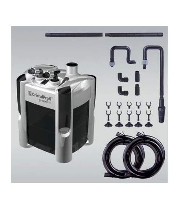 Außenfilteranlage für Aquarien, CristalProfi e402 greenline, inkl. Schläuchen, 12/16 Rohren, Ansaugkorb, Winkel, Saughaltern, Filtermassen (Biofilterkugeln und Biofilterschaum)