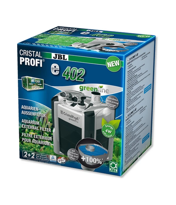 Sauberes Wasser im Aquarium ist die Voraussetzung für muntere Fische und reichen, gesund aussehenden Pflanzenbewuchs. Ideal für die Filterung des Wassers in Ihrem 40 bis 120 l Becken mit Süß- oder Salzwasser ist der JBL CristalProfi e402 greenline Außenfilter. Der extrem laufruhige Aquarium Filter kommt bereits komplett ausgestattet und anschlussfertig inklusive Schnellstart-Einrichtung zu Ihnen und kann ohne Ansaugen in Betrieb genommen werden. Durch seine um 100 % vergrößerte Vorfilterfläche erreicht dieser Aquarium Filter außerdem besonders lange Standzeiten und ist damit besonders effizient.