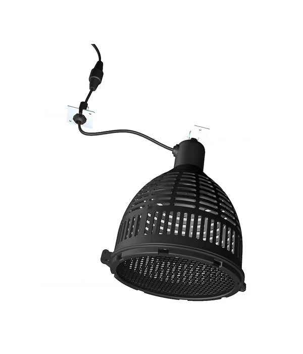 Wärmestrahlgerät, ausgelegt für Strahler bis zu 160 Watt, hitzefest und spritzwassergeschützt, eingebauter Thermoschalter, bietet naturnahes Klima