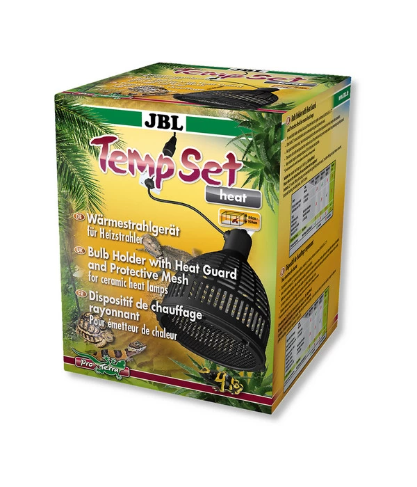 Ist die Entscheidung über die Watt-Zahl gefallen, gestaltet sich der Rest für Sie einfach: Das Wärmestrahlgerät ist bereits komplett mit hitzefester und spritzwassergeschützter E 27 Keramikfassung (IPX4 konform) vorinstalliert. Eine Trennkupplung am 2 Meter langen und spritzwassergeschützten Kabel verhindert Kabelsalat beim Verlegen der Leitung in Ihrem Becken. Besonders erwähnenswert ist der eingebaute Thermoschalter, der mittels ständiger Messungen ein Überhitzen verhindert. So sind Sie vor Bränden und Ihre Reptilien vor Überhitzung geschützt. Der Schutzkorb aus hitzefestem Spezialkunststoff mit einem Gitter aus verzinktem Eisen, an der Unterseite aus Edelstahl, verhindert, dass Ihre Reptilien der Wärmequelle zu nahe kommen. Speziell Jungtiere werden durch die enge Maschenweite und die schmalen Schlitze davor bewahrt, sich zu verbrennen. Dieser Schutz ist vor allem dann wichtig, wenn Sie Dunkelstrahler einsetzen. Sind die Leitungen verlegt, müssen Sie nur noch den richtigen Platz für den Wärmestrahler in Ihrem Terrarium finden. Dank der mitgelieferten Aufhängung ist das ganz einfach! Mit dem JBL TempSet Heat Wärmestrahlgerät erfreuen sich Ihre Tiere auf jeden Fall an einem guten, naturnahen Klima in ihrer künstlich geschaffenen Heimat.