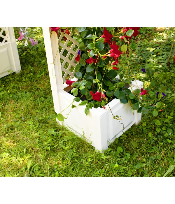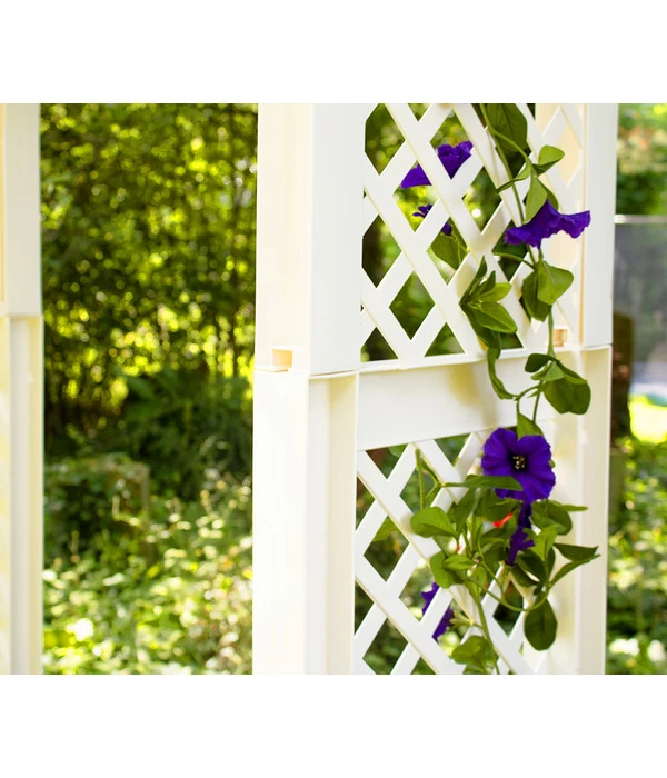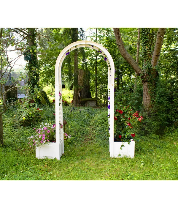 Mit dem KHW Kunststoff-Rosenbogen verwandeln Sie den Zugang zu Ihrem Garten in eine Einladung ins ureigene Paradies. Beim Durchschreiten des in vier Farben erhältlichen KHW Kunststoff-Rosenbogen werden Sie Ihren Lieblingsplatz im Garten nie wieder verlassen wollen. Die beiden seitlich angebrachten Pflanzkästen bieten Ihnen dabei die Möglichkeit der individuellen Bepflanzung. Mit einer Gesamthöhe von 207 cm haben auch große Menschen genügend Platz beim Durchschreiten des wetterfesten, farbechten und pflegeleichten KHW Kunststoff-Rosenbogens. Wählen Sie die Farbe des Bogens so aus, dass sie mit den Pflanzen in den Pflanzkästen harmonieren, und Sie werden jedes Mal aufs Neue das Gefühl haben einen kleinen Urlaub zu beginnen, wenn Sie Ihren Garten betreten. Die Lieferung des KHW Kunststoff-Rosenbogens erfolgt in zerlegtem Zustand. Für die einfache Montage sind aber keine zusätzlichen Werkzeuge nötig. Alles, was sie brauchen, liegt der Verpackung bei.