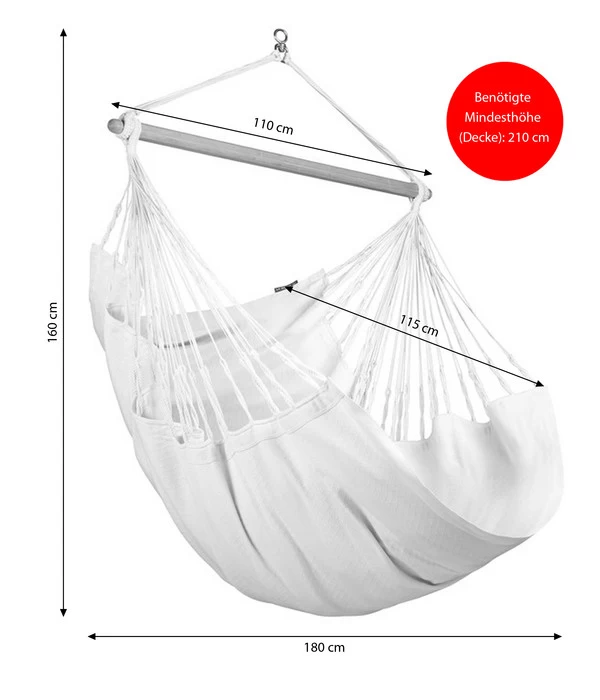 Die Tatsache, dass jeder einzelne La Siesta Hängestuhl ‚Habana‘ in Kolumbien liebevoll und detailgenau von Hand angefertigt wurde, macht ihn nicht nur zum individuellen Unikat, sie vertieft auch das Gefühl von grenzenloser Entspannung und Geborgenheit. Und ein etwas genauerer Blick zeigt die hohe Qualität der Verarbeitung sowie die einfache, aber gut durchdachte Konstruktion. Dabei wird es Ihnen gefallen zu hören, dass die verwendete Bio-Baumwolle besonders hautfreundlich ist und nach dem Global Organic Textile Standard (GOTS) zertifiziert wurde.