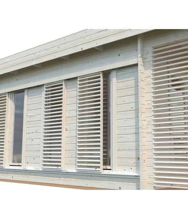 Sie verbringen gerne so viel Zeit wie möglich in Ihrem Garten und würden das am liebsten auch bei schlechtem Wetter tun? Dann besorgen Sie sich das hochwertige Gartenhaus Caroline von Palmako. Egal, ob Sie es als Outdoor-Homeoffice, Gästehaus, Loungebereich oder Hobbyraum nutzen wollen, dieses geräumige Domizil hält Ihnen viele Möglichkeiten offen. Es ist mit praktischen Lamellen-Sichtschutz-Elementen und großen Fenstern ausgestattet, die Ihnen einen lichtdurchfluteten Innenraum garantieren, in dem man es sich gerne gemütlich macht.