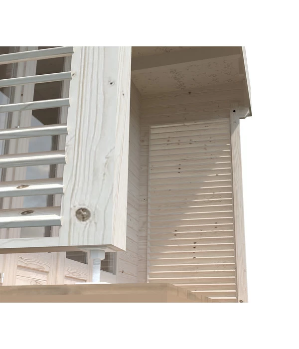 Das charmante Palmako Gartenhaus Caroline verfügt über ein schön großes Vordach, unter dem Sie sich bei einem leichten Sommerregen zurückziehen und dennoch die Vorzüge der Natur genießen können. Stellen Sie hier eine Gartenliege auf und lassen Sie einfach die Seele baumeln. Die stabile Konstruktion wurde außerdem mit dicken Blockbohlen inklusive winddichter Chaletschnitt-Eckverbindung versehen, was das Häuschen zu einem robusten und geschützten Rückzugsort bei jeder Wetterlage macht. Lassen Sie sich dieses Schmuckstück nicht entgehen, sondern bestellen Sie das Gartenhaus Caroline der Firma Palmako besser noch heute mit der dazu passenden Dacheindeckung.