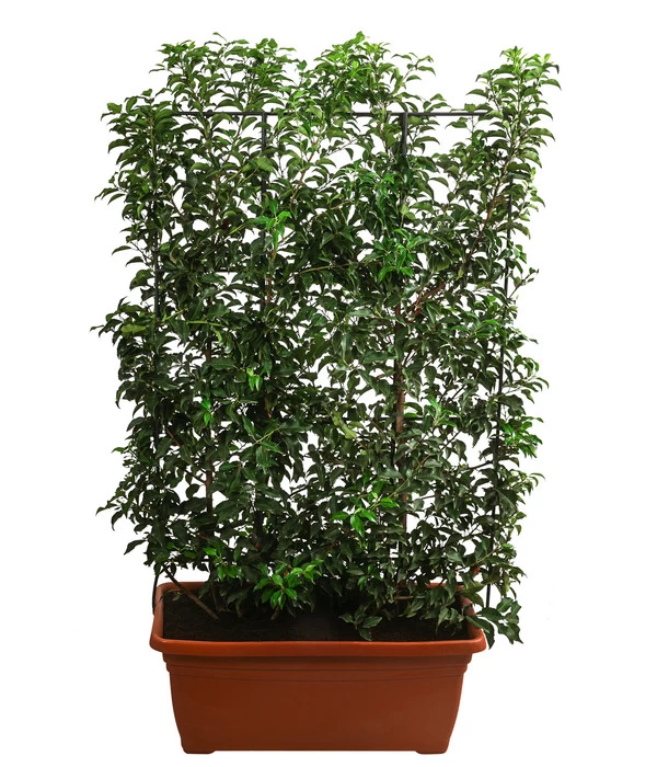 Die edelste unter den Lorbeerkirschen – hier am Spalier! Portugiesischer Kirschlorbeer ‚Brenelia‘, ca. 170 cm