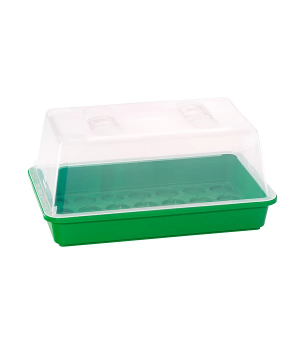 Sie wollen in Ihrem Innenraum einen Ort mit idealen Bedingungen für die Anzucht von Blumen, Kräutern oder Gemüse schaffen? Hier bietet sich das Zimmergewächshaus aus dem Hause Romberg optimal an. Sein Ventilationssystem mit Belüftungslöchern und Schiebereglern in der Haube sorgt für ein ideales Klima, in dem Ihre Gewächse wundervoll gedeihen. Dadurch gestaltet sich die Anzucht mit diesem kleinen Gewächshaus kinderleicht. Platzieren Sie einfach Kokos-Quelltabletten oder Anzuchttöpfe in seine Vertiefungen und schon kann die Aussaat von aromatischen Kräutern oder leckerem Gemüse beginnen. Aber auch zur Unterbringung von kleineren Pflanzen, die ein geschütztes Klima brauchen, eignet sich die Vorrichtung hervorragend.