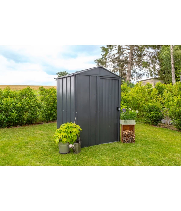Das Spacemaker Gerätehaus besteht aus hochwertigem verzinktem Stahl, der äußerst witterungsbeständig und kratzfest ist. Das Satteldach sorgt dafür, dass Regenwasser direkt abfließt. So sammelt sich keine Nässe auf dem Dach, die das Material angreifen kann. Sie werden also lange Ihre Freude an diesem eleganten Gerätehaus haben. Der Aufbau gelingt Ihnen spielend leicht und ist aufgrund der unkomplizierten Bauweise bald erledigt, damit Sie sich schnell wieder Ihrer Gartenarbeit widmen können. Bestellen Sie am besten noch heute Ihr Spacemaker Gerätehaus und Sie werden Ihre Gartenwerkzeuge nie wieder suchen müssen!