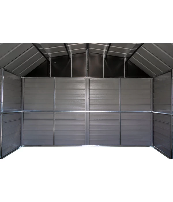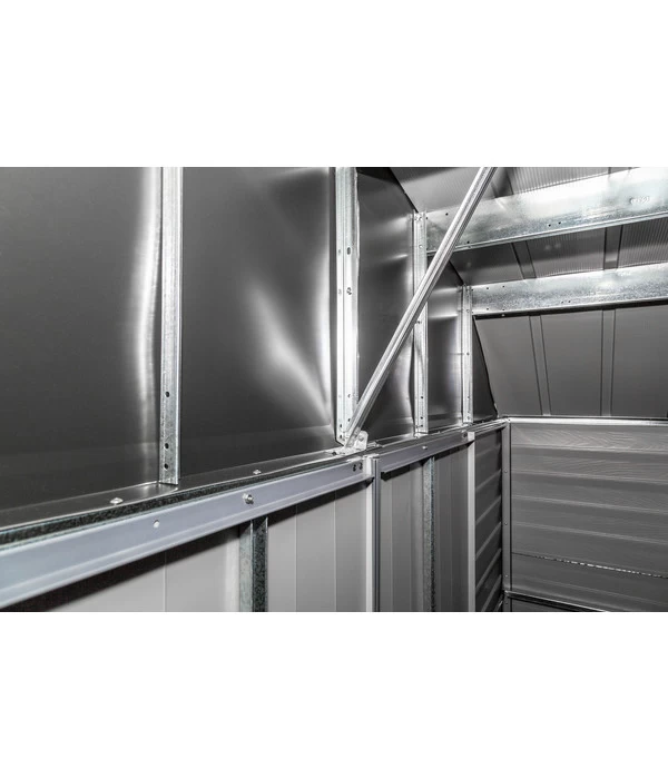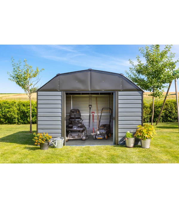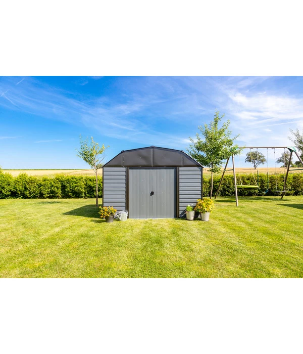 Sie wünschen sich ein Gerätehaus als Stauraum in Ihrem Garten, bevorzugen aber einen außergewöhnlichen Look? Dann wird Sie das Metallgerätehaus von Spacemaker überzeugen. Seine Optik mit dem attraktiven Bogendach erinnert an eine Scheune, die nur darauf wartet, alle Ihre Gartenutensilien zu beherbergen. Natürlich ist hier auch genug Platz für Spielzeug, Pflanzartikel sowie Poolzubehör, wodurch sie sich zu jeder Zeit über Ihren schön aufgeräumten Garten freuen können. Die große Doppeltür bietet Ihnen außerdem einen breitflächigen Zugang zu Ihrem neuen Schuppen. So lassen sich auch größere Gartengeräte ganz einfach und mühelos verstauen.