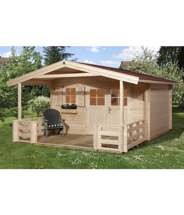 Gartenhaus 136 in stabiler Blockbohlenbauweise, 45 mm Wandstärke, mit 19 mm Massivholzdach und Massivholzboden