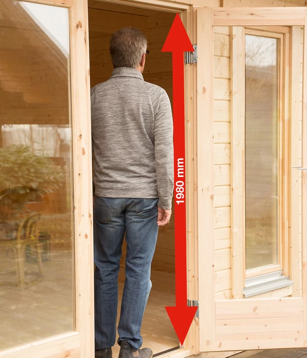 Das Wolff Finnhaus Gartenhaus Trondheim 70-D, inkl. Lounge 400 links ist nicht nur – wie alle Holzhäuser von Wolff Finnhaus – aus hochwertigem Nordischem Holz und in bester Verarbeitungsqualität gefertigt – die Wandbohlen sind bei diesem Haus 70 mm stark und isolieren so gut, dass Sie sich auch zu anderen Jahreszeiten gerne in dem Haus aufhalten werden. Zumal durch die spezielle Montageart eine wind- und regendichte Verbindung in den Ecken gewährleistet wird und die bodentiefen Fenster isolierverglast sind.