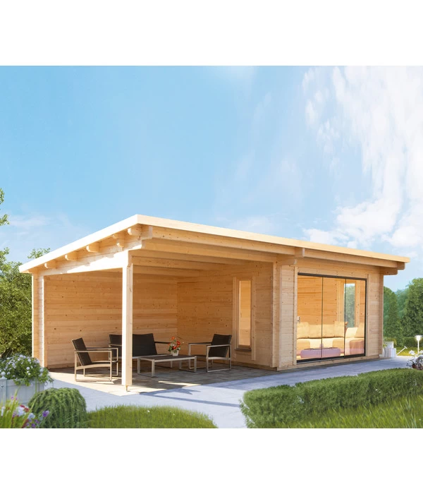 Die Auswahl an Gartenhäusern ist groß, aber oftmals weiß man zu Beginn der Suche noch gar nicht genau, was man braucht. Wenn Sie ein Fan modernen Designs sind, ist ein Haus mit trendigem Pultdach richtig. Es sollte auch große Fenster haben, damit viel Tageslicht hineinfallen kann und der Innenraum angenehm hell und freundlich wirkt. Das reicht Ihnen noch nicht? Muss es auch nicht, es geht noch besser. Mit dem Wolff Finnhaus Gartenhaus Trondheim 70-D, inkl. Lounge 400 links können wir Ihnen ein Modell vorstellen, das neben den bodentiefen Seitenfenstern auf der Frontseite eine extrahohe Schiebetür hat. Dadurch können Sie auch bei weit geöffneter Schiebetür den kompletten Raum dahinter nutzen, da kein Türflügel störend in den Raum ragt. Das Non-plus-Ultra aber ist die überdachte Terrasse, die das Haus schlichtweg perfekt macht. Entscheiden Sie sich jetzt für das Wolff Finnhaus Gartenhaus Trondheim 70-D, inkl. Lounge 400 links – wir wünschen Ihnen viele entspannte Stunden damit!