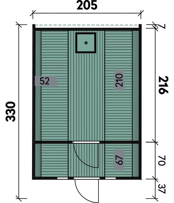 Wirkt ein Finnhaus Saunafass Basic 330 Bausatz dank rustikaler Tür, Fenstern, hochwertigen Dachschindeln und Vordach wie ein gemütliches Holzhäuschen, das direkt einem Märchen entstammen könnte. So wartet im Inneren eine typische Saunawelt auf Sie, in der Ihnen die freundliche Wärme von naturbelassenem Holz entgegenstrahlt. Der kleine Vorraum ist so gemütlich wie praktisch. Im Saunaraum selbst ist der Standplatz für Ihren Saunaofen vorbereitet, flankiert von zwei Ruheliegen aus Erlenholz, das sich im Übrigen dank seines geringen Harzgehalts weniger stark aufheizen kann und deshalb ein angenehmes Sitz- und Liege-Erlebnis bietet.
