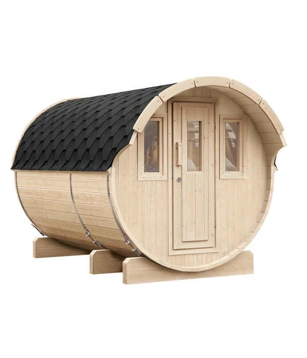 mit einem Finnhaus Saunafass Basic 330 Bausatz
